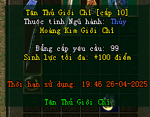 Công thức 5 tân thủ chi thạch = 1 nhẫn tân thủ hsd 7 ngày kích toàn bộ thuộc tính