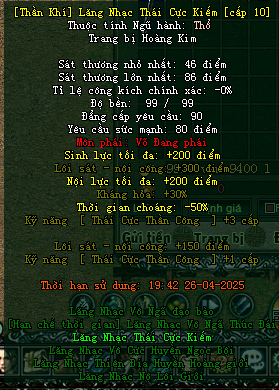 Vũ khí nội công sẽ + 150 hỏa sát- băng sát… + 1 trấn phái